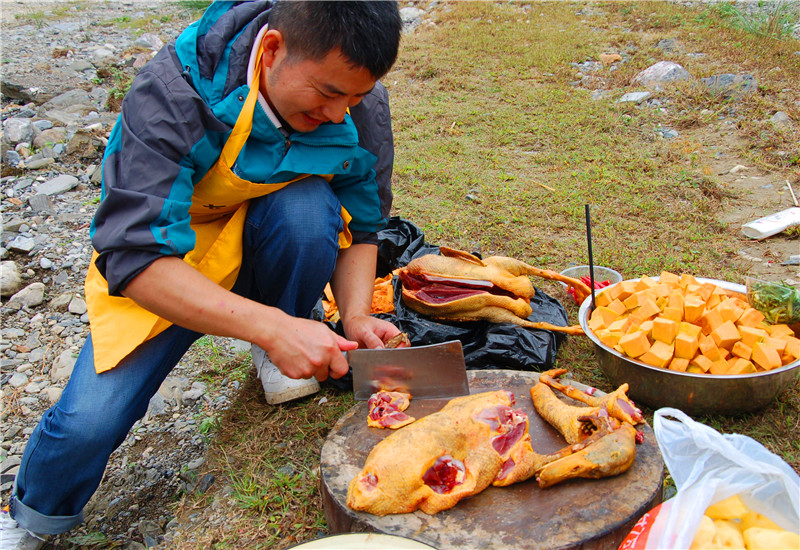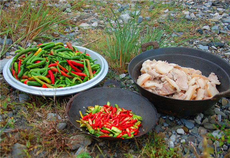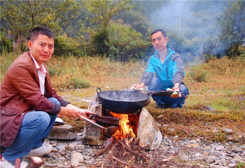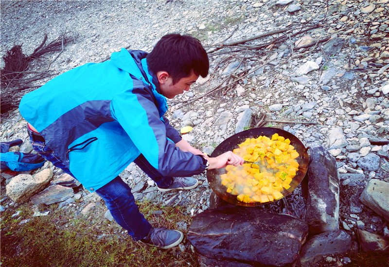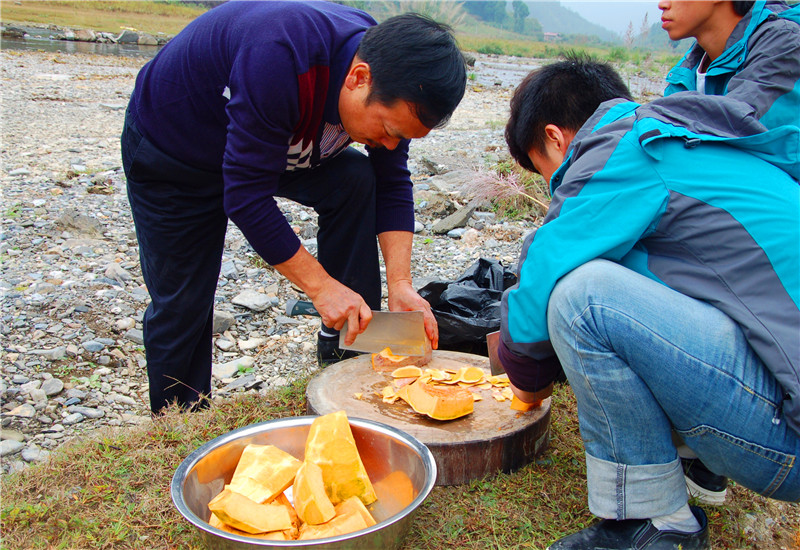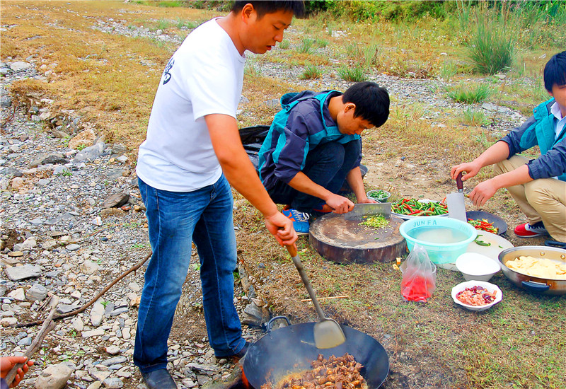 帥哥們就負責切菜,炒菜
