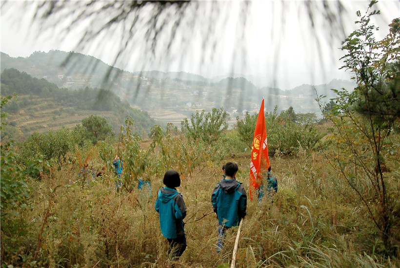 二隊帶頭大哥蹲在小山坡上氣喘吁吁。