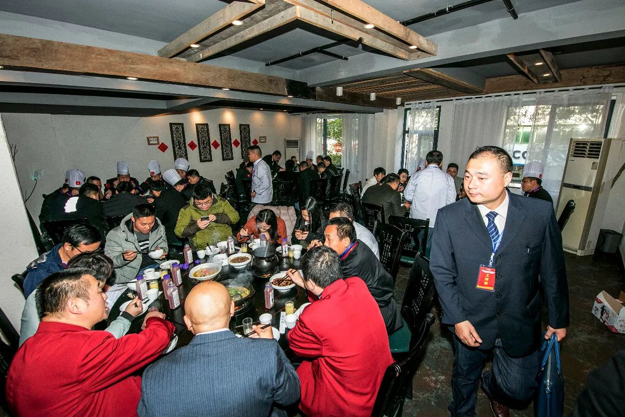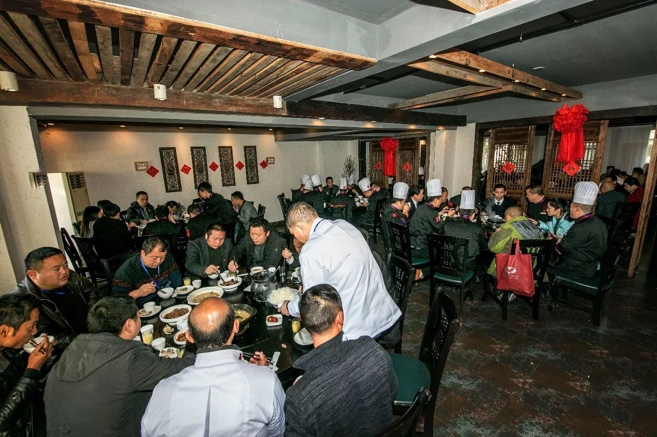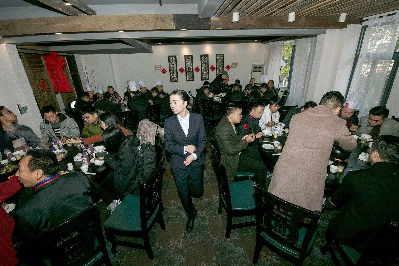 上午交流會結束后四地廚師百余位廚師精英來到秦大媽餐飲老字號用餐,秦大媽餐飲團隊帶來了不一樣的迎賓感受~