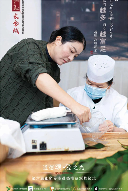 宋金絨,張家界秦大媽餐飲管理有限公司董事長。一個(gè)“秦大媽”,溫暖一座城。疫情期間,她帶領(lǐng)員工參與戰(zhàn)疫,共送出免費(fèi)愛心盒飯八萬九千多份,幫助和溫暖了無數(shù)人。十年來,她一邊創(chuàng)業(yè),一邊熱心公益事業(yè),共組織為福利中心、貧困家庭等捐款捐物超過200余萬元。